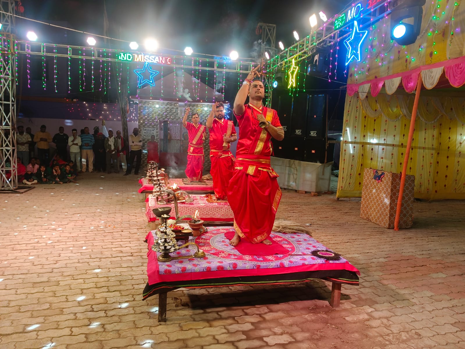मंदिर परिसर को रंगीन विद्युत सज्जा और फूल-मालाओं से भव्य रूप दिया गया है। आयोजन के दौरान श्रद्धालुओं के लिए—