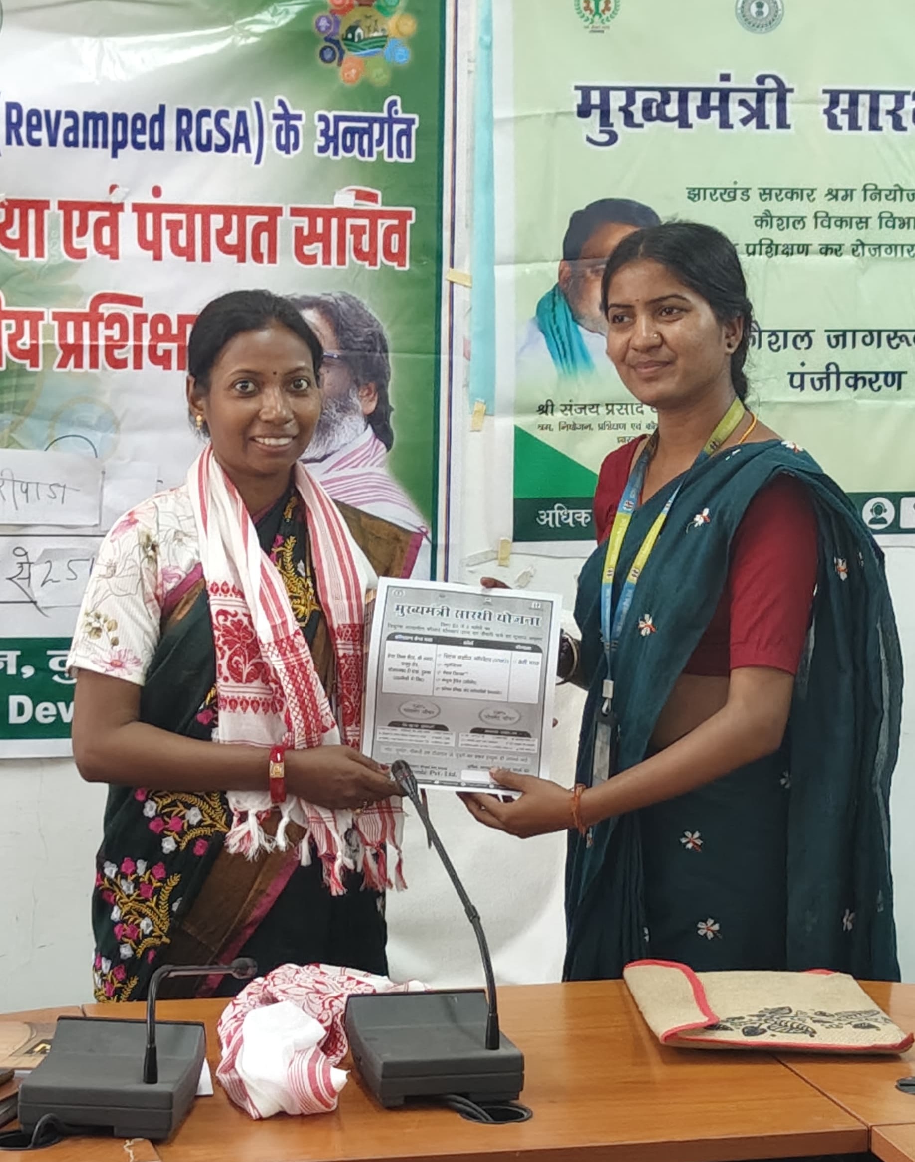 शिकारीपाड़ा : दुमका जिला के शिकारीपाड़ा के प्रखंड सभागार में आज सेंटर मैनेजर प्रिया सिंह और शीतल कुमारी के द्वारा कार्यशाला का आयोजन कर मुख्यमंत्री सारथी योजना के तहत महिलाओं के बेहतर भविष्य के लिए सशक्त बनाने पर जोर दिया गया । यह योजना राज्य सरकार की पहल है जिसमें महिलाओं को स्किल ट्रेनिंग मुक्त दिया जा रहा है । कार्यशाला के दौरान प्रशिक्षण केंद्र का पता मेगा स्किल सेंटर श्री अमरा पाकुड़ रोड गोल चक्कर के समीप दुमका बताया गया । कार्यशाला के दौरान कोर्स की भी जानकारी दी गई जिसमें स्विंग मशीन ऑपरेटर , ब्यूटीशियन , फैशन डिजाइनर , कंप्यूटर ट्रेनिंग, स्पोकन इंग्लिश और पर्सनैलिटी डेवलपमेंट बताई गई । जिसके लिए न्यूनतम योग्यता आठवीं पास बताई गई । वही कार्यशाला के दौरान प्रखंड विकास पदाधिकारी शिकारीपाड़ा एवं महिला मुखिया मास्टर ट्रेनर आशा हेंब्रम को सम्मानित किया गया । कार्यशाला के दौरान प्रखंड क्षेत्र के सभी मुखिया सभी पंचायत सचिव सभी जलसहिया और प्रखंड कर्मी उपस्थित रहे।